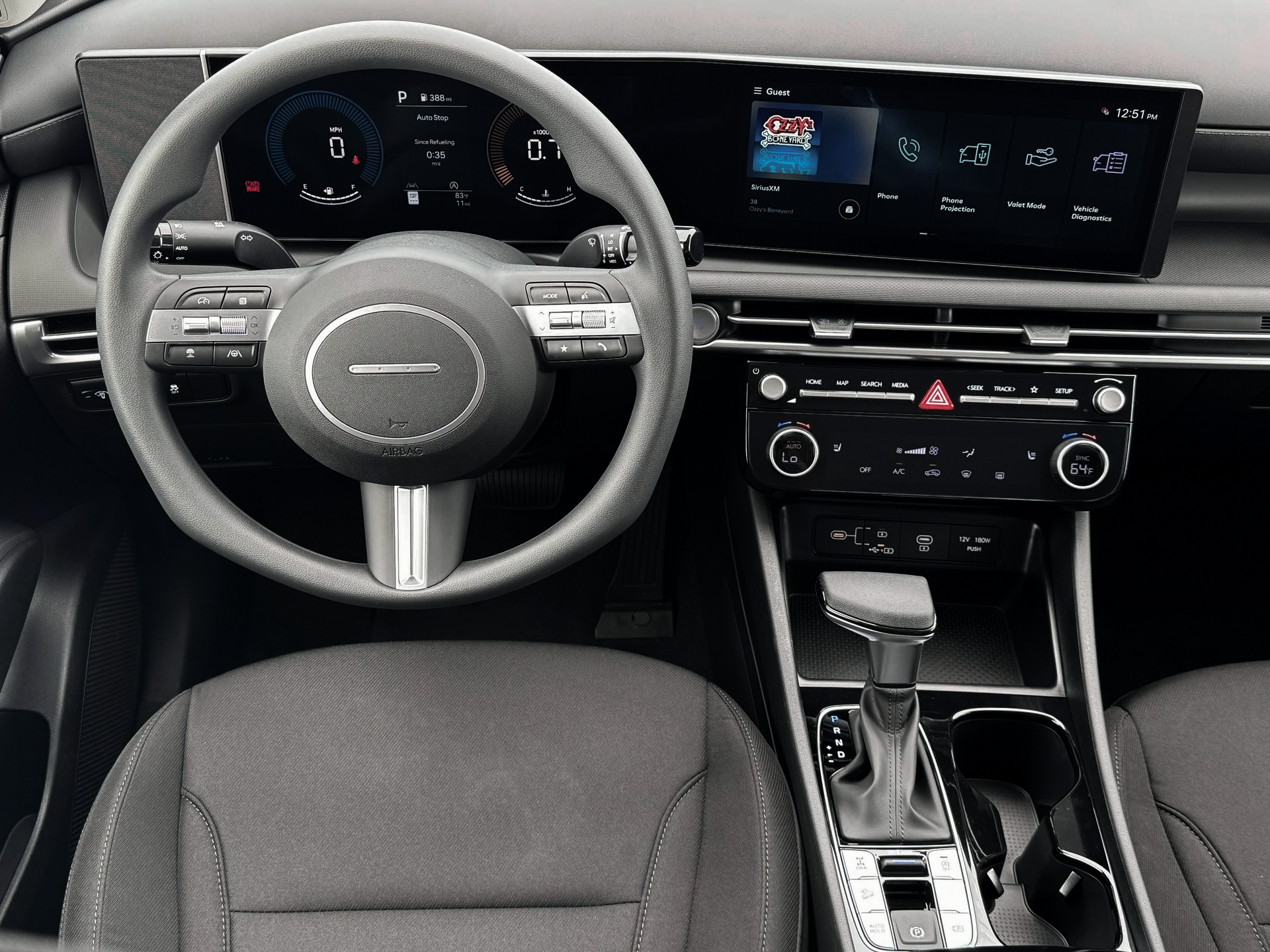 - Radio: AM/FM/HD Audio System -inc: 12.3" color touchscreen display, 6 speakers, SiriusXM satellite radio system (3-month trial subscription), wireless Apple CarPlay and Android Auto integration, controller OTA update capability, Blue Link connected car system and USB connectivity