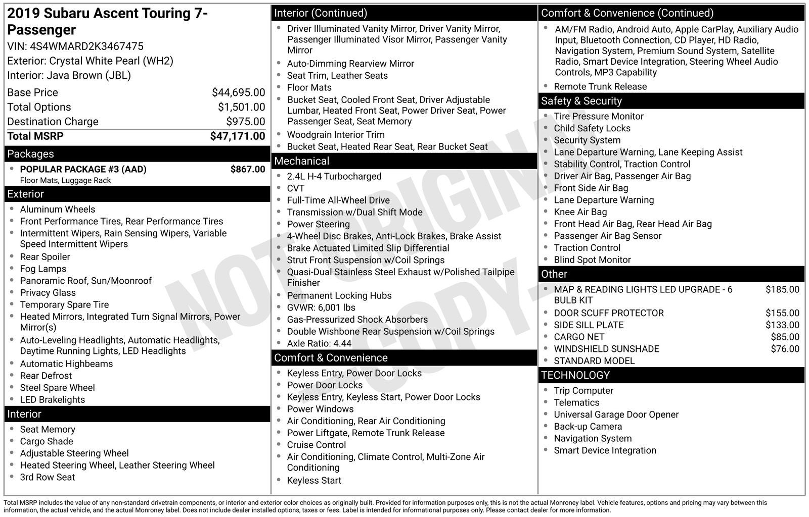- Vehicle Name: Subaru Ascent