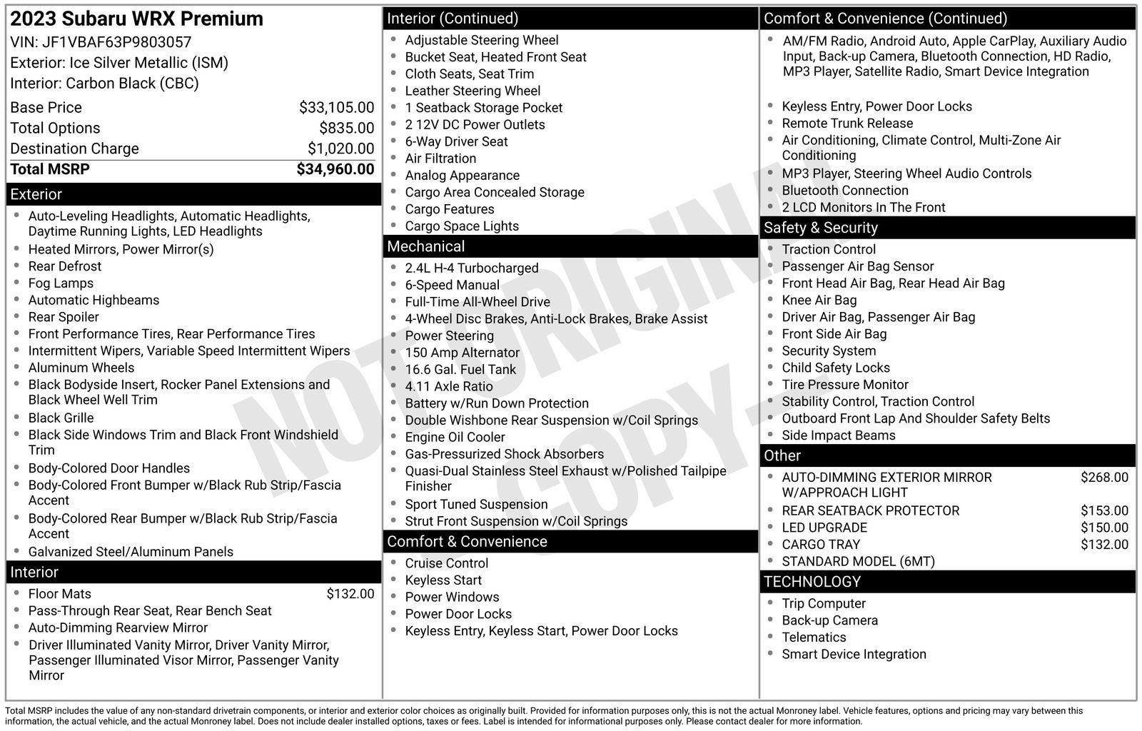 - Vehicle Name: Subaru WRX