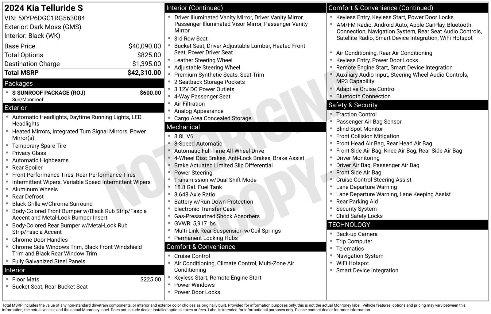 This online window sticker is provided for informational purposes only. Vehicle features, options, pricing and other information are subject to change. See your Hyundai dealer and the Monroney label affixed to the actual vehicle for the most up-to-date specifications and information.