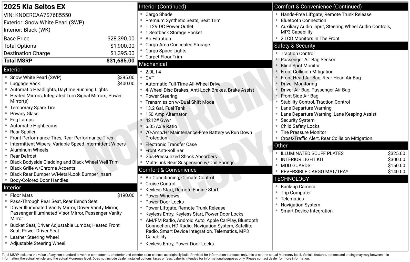 This online window sticker is provided for informational purposes only. Vehicle features, options, pricing and other information are subject to change. See your Hyundai dealer and the Monroney label affixed to the actual vehicle for the most up-to-date specifications and information.