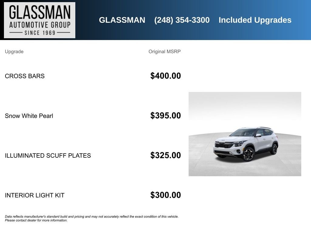Here at Glassman Automotive we believe in delivering superior service and respect for our customers time. With Glassman Assurance you can expect us to go above and beyond your expectations. We don't want to sell you a car we want to ''Help you buy one''. *POSTED PRICING IS EXCLUSIVE FOR INTERNET CUSTOMERS. *POSTED PRICING IS VALID ONLY UPON PRESENTATION OF THIS AD PRIOR TO DELIVERY.